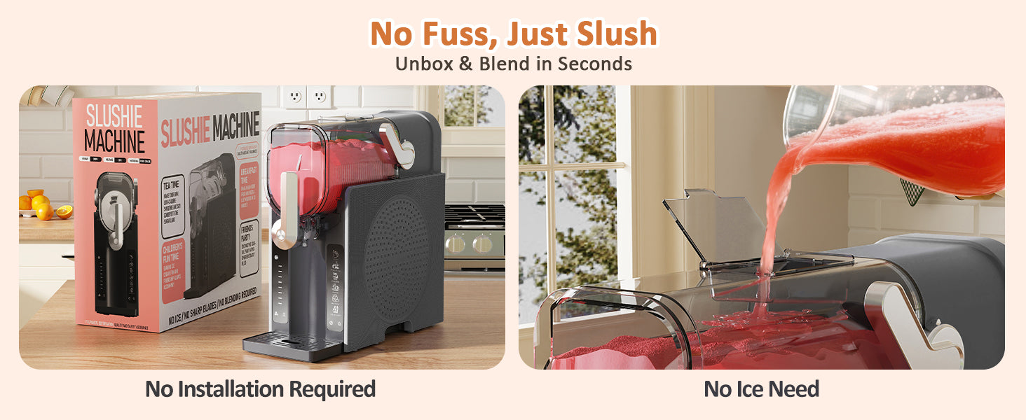 lmagine sipping on rich,flavorful smoothies and ice-cold drinks-without themess of melting ice. With just the press of a button,UJR's slushie machine locks in every drop of flavor,delivering perfectly chilled drinks without any dilution.Whether it's a frosty iced coffee, a refreshing smoothie,or a fun margarita, simply pour, press, and enjoy an instant frozen treat- unbeatable in taste and convenience.