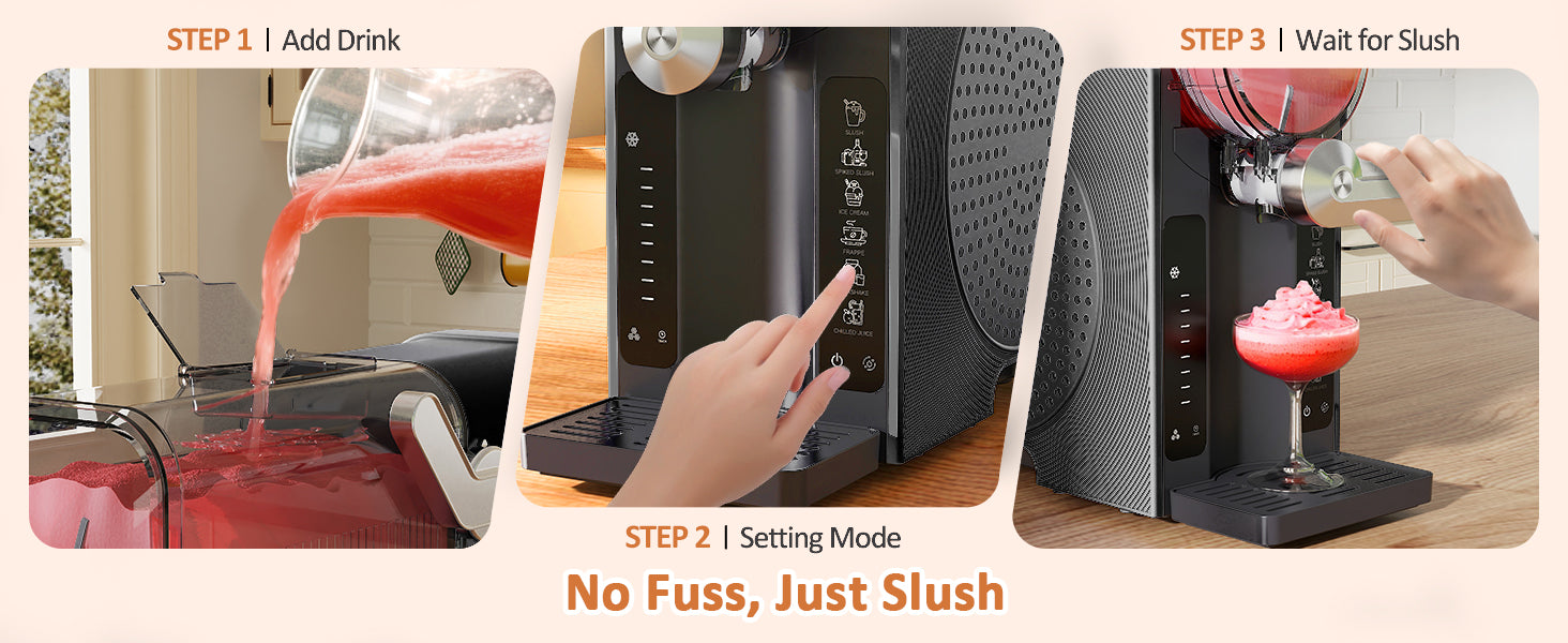 No more waiting around! This slushy maker FastChilLtechnology freezes your favorite drinks and desserts in record time. Want a perfectly textured treat? Your favorite frozen snacks are ready in as little as 5 minutes.Whether it's smoothies or ice cream, UuR delivers smooth, consistent texture quickly, with no long waits.